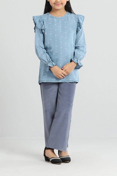 Girl's Top : Sky Blue & Indigo ( 2-8 Years)