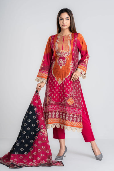 1.Print: Digital printed 3Pcs lawn set with Chunri print.
