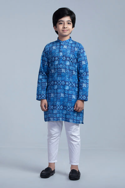 100% cotton digital printed Boy's Panjabi with contrast on the inner collar and inner placket.