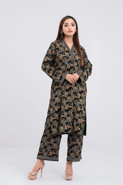 Women's Ethnic Kurta : Jet Black Printed & Chocolate Truffle Printed