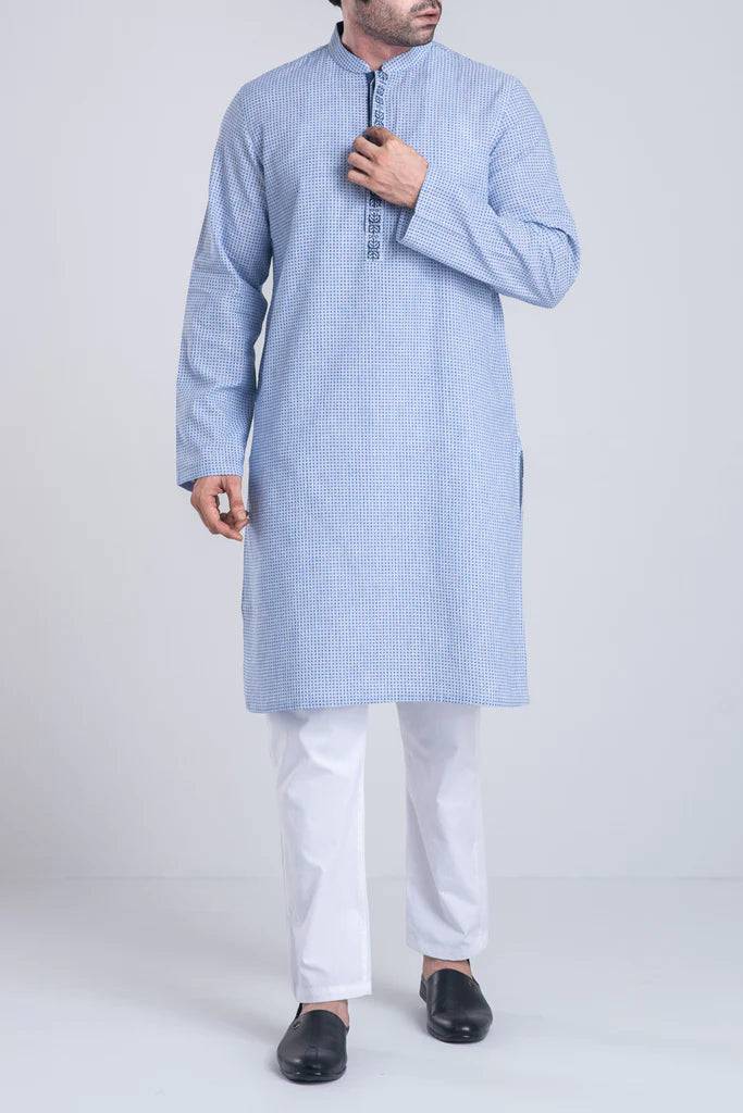 Yarn Dyed fabric Panjabi with rotary print and placket embroidery