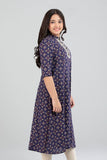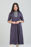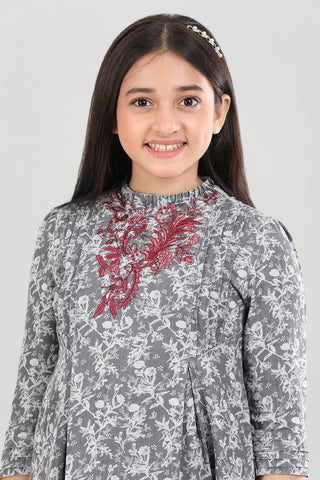 A single piece in viscose with rotary printed. Added Embroidered and contrast pipping.