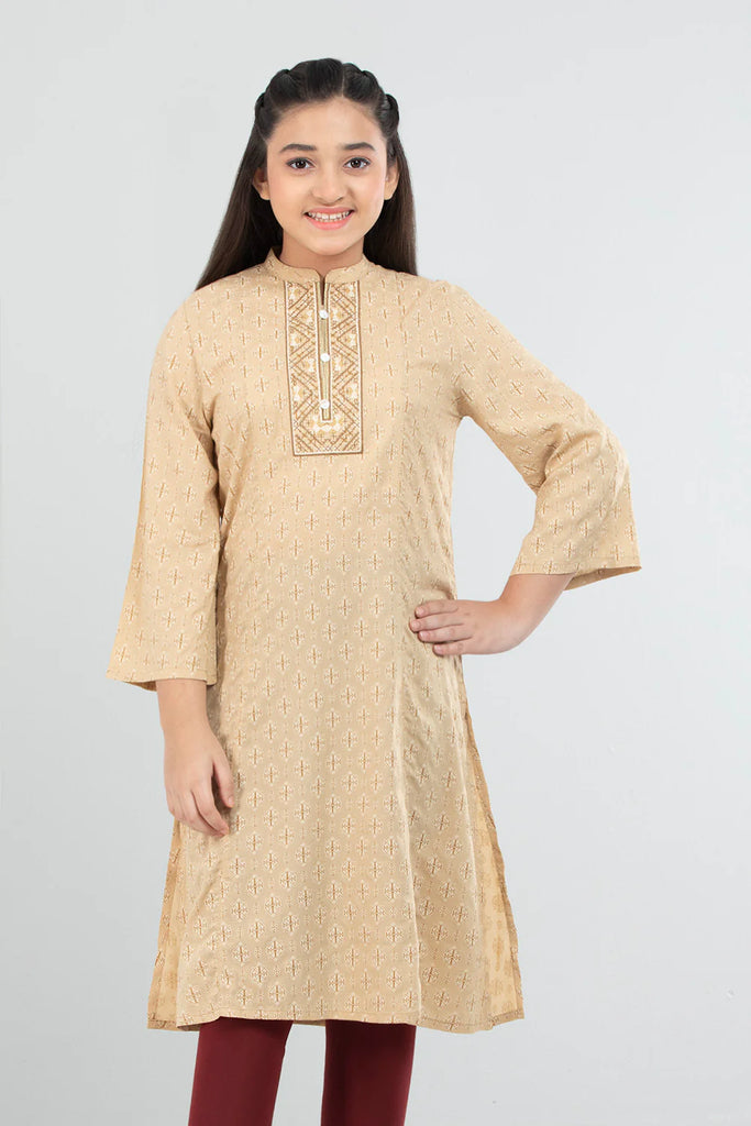 Junior Girls Ethnic Top (10-14 Years) : Almond Buff & Lilac Breeze