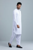This men's premium Kabli, crafted from comfortable blended fabric with hand-embroidered details on the band, placket, and cuff, offers sophistication and style for special occasions. Paired with a traditional salwar, it exudes elegance and cultural richness.