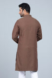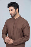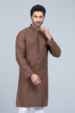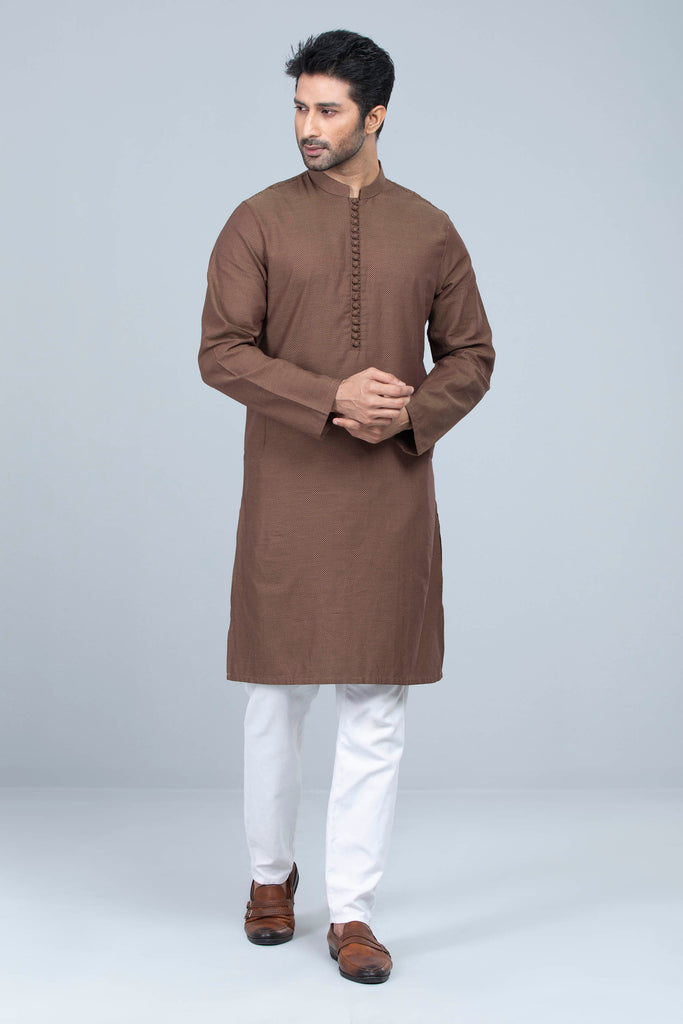 For a semi-formal look, a dobby fabric Panjabi with fabric-covered buttons offers a sophisticated yet understated elegance. The dobby fabric adds texture and visual interest to the Panjabi, while the fabric-covered buttons provide a polished finish. This combination creates a versatile ensemble suitable for various semi-formal occasions.