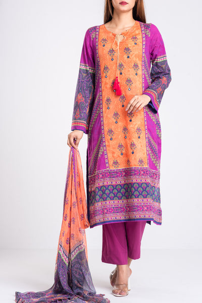 1.Print: Digital printed 3Pcs lawn set with floral print.