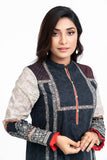 - Embellishment: Jamawar print, embroidery, decorative hem with muslin detailing, gold lace, contrast piping, printed patch at front yoke, decorative button and braid detailing.