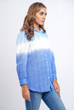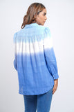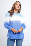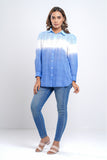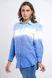 Ombre Relax fitted shirt This women's casual shirt is crafted from 100% textured cotton fabric, ensuring comfort and breathability. Featuring a classic shirt collar and full sleeves with buttoned cuffs, it boasts a captivating ombre blue dyed design, adding a touch of casual elegance to any ensemble.