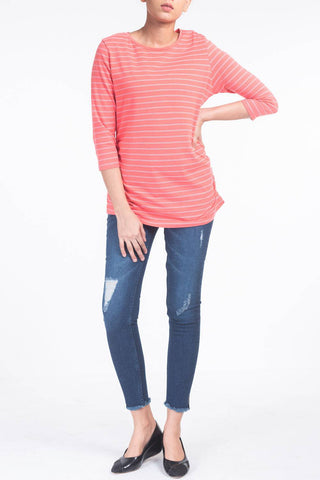 CREW NECK STRIPPED 3/4 SLEEVES TEE