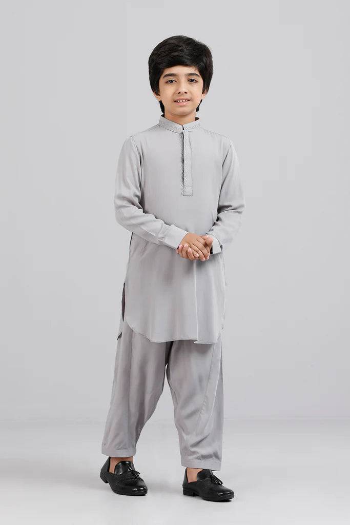 100% viscose fabric boys kabli set with embroidery on collar neck and hidden placket