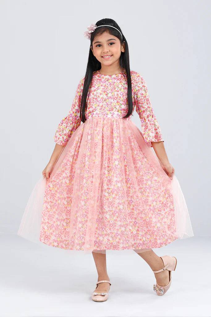 Girls Dress (2-8 Years) : Pink Dress & Turquoise printed