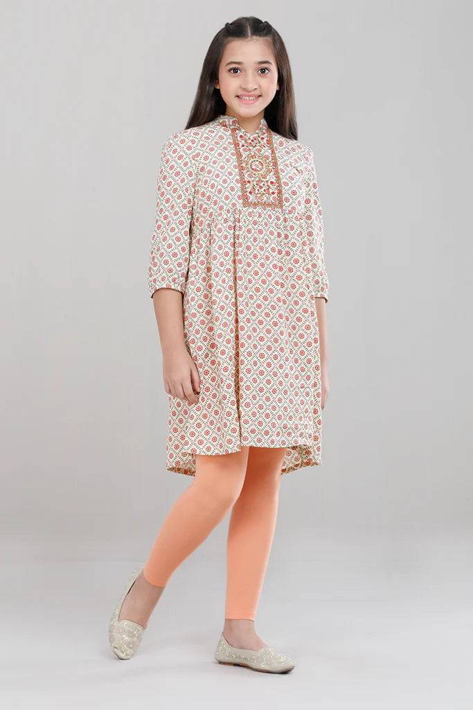 Junior Girls Ethnic Top (10-14 Years) : Vanilla Printed