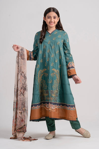 Junior Girl's Lawn: RAIN FOREST & MAROON BANNER (10-14 Years)