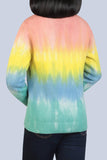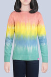 JUNIOR GIRLS MULTI COLOR TIE DYED LONG SLEEVE CRAFTED SWEATER