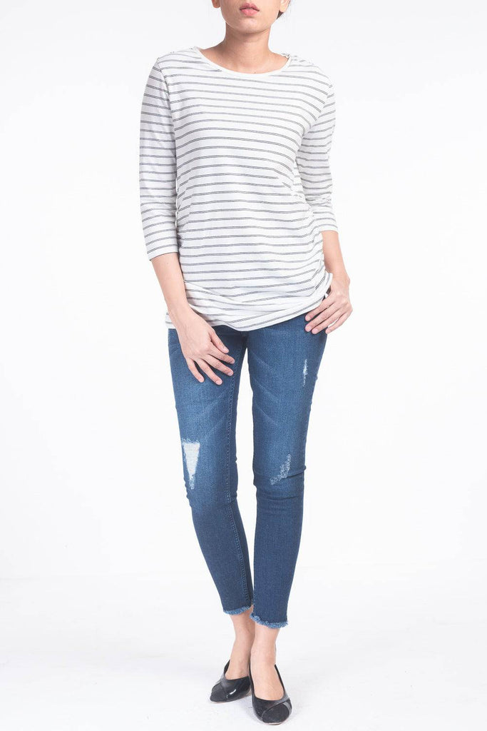 CREW NECK STRIPPED 3/4 SLEEVES TEE