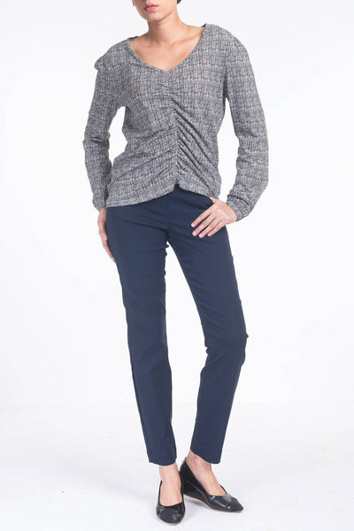 RUCHED FRONT V-NECK FULL SLEEVES TEE