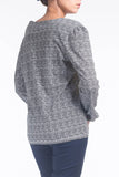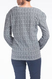 LADIES KNITTED T-SHIRT WHITE BLACK PRINT