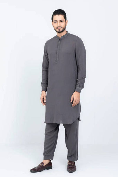 This Kabli set in 100% viscose fabric, with tone-on-tone embroidery on the band, placket, and cuff, exudes sophistication and refinement. It is perfect for formal events, celebrations, or special occasions where you want to make a stylish impression. The combination of high-quality fabric, subtle embroidery, and classic design elements creates a timeless and classy ensemble.