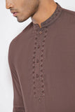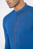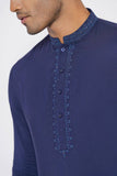 With an eye-catching color, tone-on-tone embroidery & Hand embroidery on Kabli, a mandarin collar band will keep you cool on those warmer days.