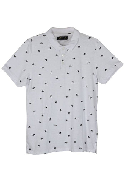 MENS KNITTED POLO SHIRT WHITE / BLACK PRINT