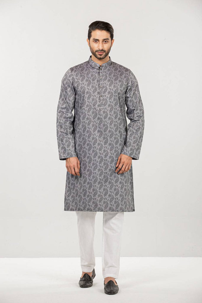 Great for festivals or official events after hours, this classic Panjabi is a must-have in any man's wardrobe. Made from a soft and comfortable 100% cotton Jacquard fabric and contrast detail make it a wardrobe essential for men.