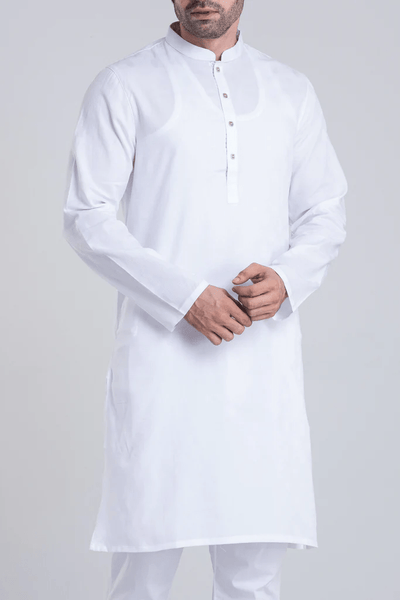 A fine cotton fabric Panjabi with round band , nice metal buttons. when grand events beckon only a smart Panjabi like this will fit the bill.