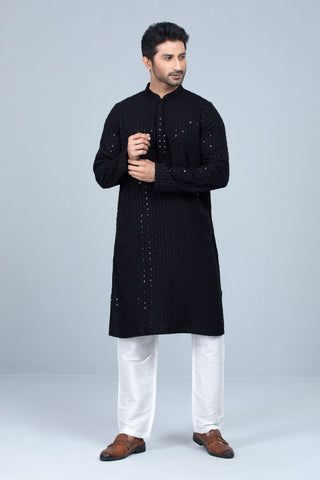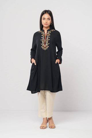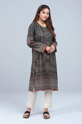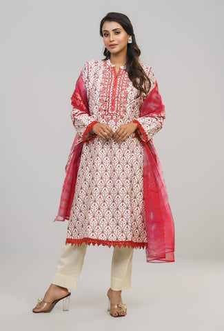 100% Georgette & 100% Viscose fabric with layered ethnic pattern. Allover printed. Embroidered at front.
