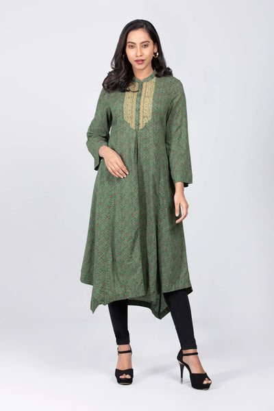 Women Ethnic Kurta : Artichoke Green Printed & Rooibos Tea Printed