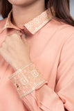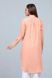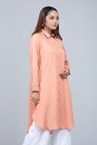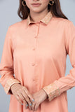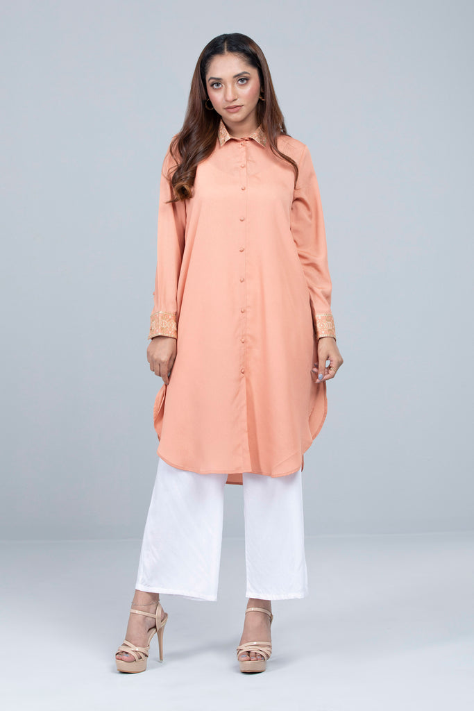 Single piece in viscose solid fabric. Added Embroidered at collar and sleeve band. Round hem and Added button, 3/4 sleeve.