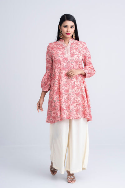 Women Ethnic Kurti : Candle Lt Peach Printed