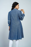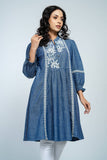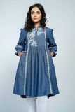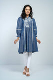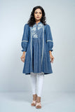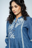 A single piece in cotton denim fabric with different wash.Embroidered,3/4 sleeve with smocking.