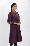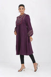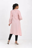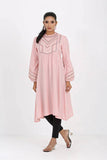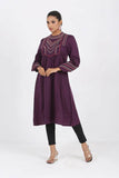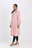 An exclusive Women’s embroidered kurti embellished with Embroidery, gold lace, pleat and decorative button detailing.