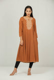 Single piece in viscose with rotary printed. Embroidered with lurex thread, pintucks at front & added lace pipping.