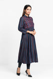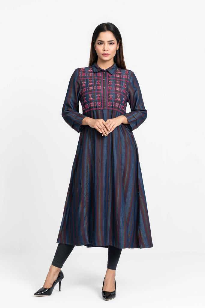 A single piece in printed denim fabric with different wash , added embroidery .Different pattern.