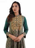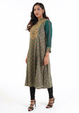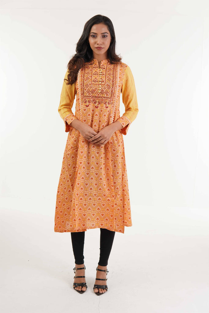 Women's ethnic : Cadium Orange & Artichoke Green printed
