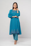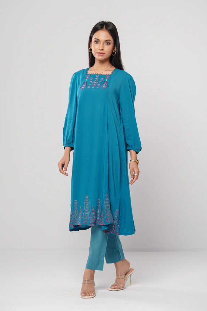 Women's Ethnic Kurta - One Piece : Deep Lagoon & Chilli Pepper