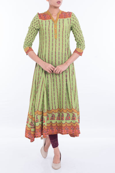 Women's Ethnic PARROT GREEN PRINTED
