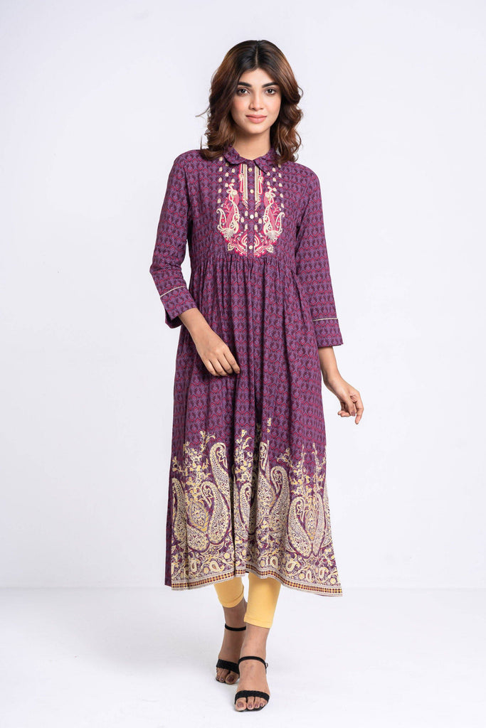 Women's Ethnic : Plum Purple Printed & Blue Depth Printed
