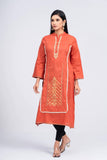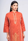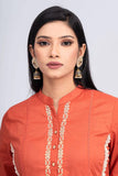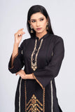 Single piece in cotton. Embroidered and metallic printed, added lace.