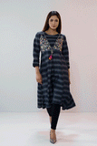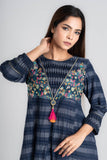 An exclusive Women’s embroidered kurti embellished with Embroidery, Decorative pintuck, gold lace and decorative tassel detailing.