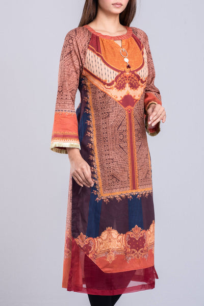 | 1.Print: Digital printed single lawn kurti with Aztec and Ornamental print. |
