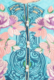 decorative beads. - Embroidery: Floral machine embroidery at front.