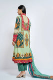 An exclusive digital printed lawn three-piece set embellished with Rugs print, decorative lace, decorative tassel, and pearl detailing that exudes elegance and sophistication, perfect for special occasions or adds luxury to your everyday wardrobe. It's come with a cotton dupatta and matching solid-dyed trouser.
