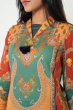 - Neckline: V-neck embellished with gusset with golden lurex chain stitch and decorative tassel.