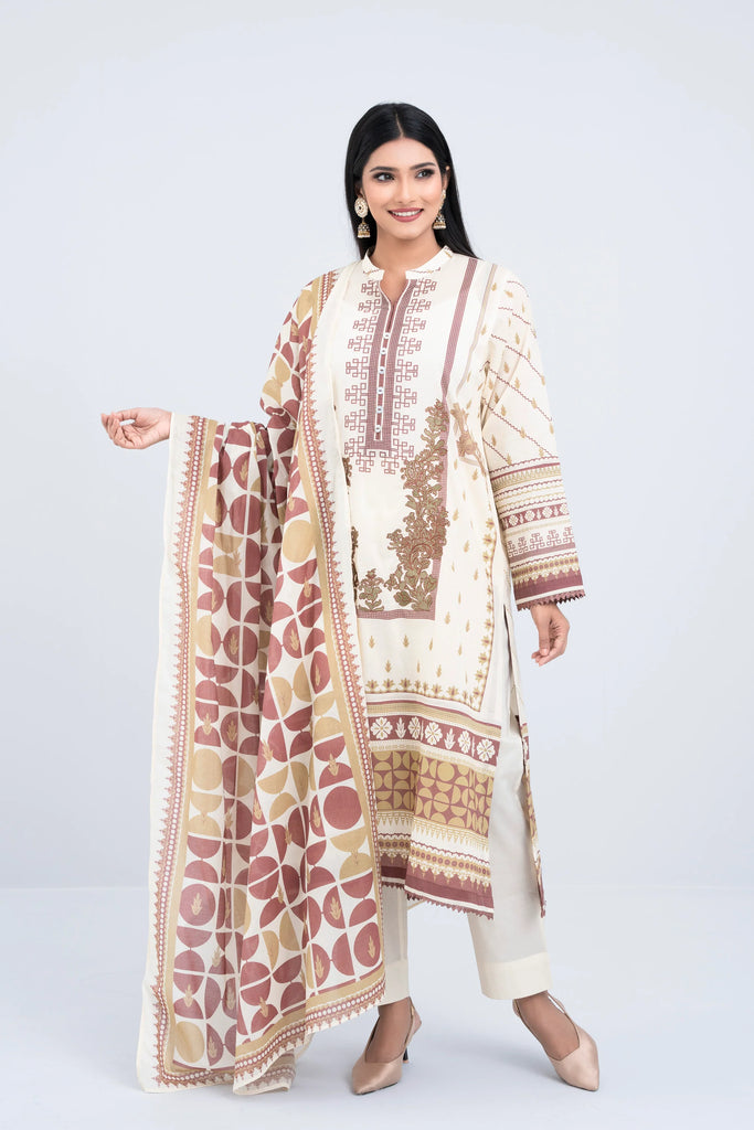 Elevate your elegance with our stunning three-piece ensemble. Crafted from luxurious digital printed lawn fabric, adorned with embroidery, delicate lace, dedicated contrast piping, and shell buttons this ensemble exudes sophistication. Paired with a cotton dupatta and solid dyed trousers, it's a perfect blend of style and comfort for any occasion.