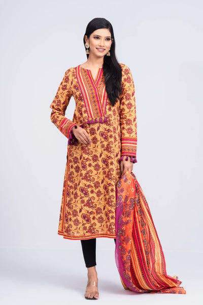 An exclusive digital printed lawn two-piece set embellished with Floral print, V-slit with dedicated printed yoke, tassel and printed border patch at side seam that exudes elegance and sophistication, perfect for special occasions or adds luxury to your everyday wardrobe. It's come with a silk dupatta.