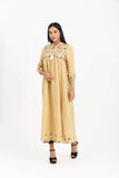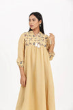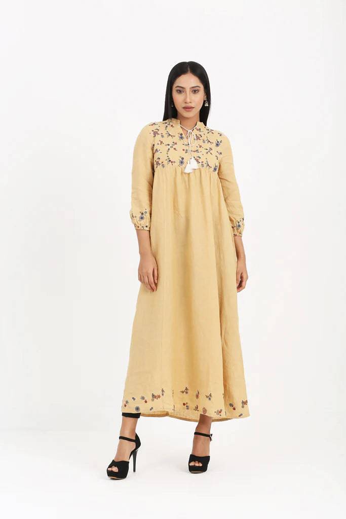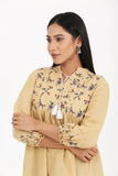 Remi Cotton Fabric, Floral Embroidery, Round slit band neck with tassel