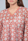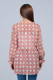 Printed Charm Georgette Top. Delicately textured georgette fabric adorned with an all-over print. Features a flattering V-neck with lace details and full sleeves with elastic openings. Designed for a regular fit, perfect for effortless fashion.
