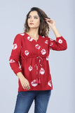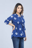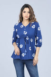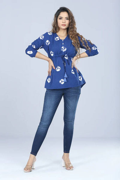 Dobby cotton fabric, Cut & sew with lpintuck & adder lace details, inside tunnel with cord & tassel , Shibori Dye details women's Fashion top.